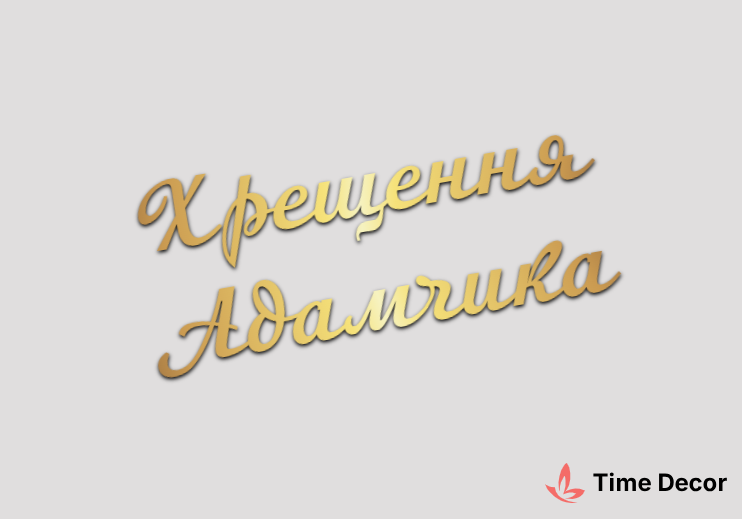 Пластиковий напис "Хрещення Адамчика" – дзеркальний або матовий пластик, можливе виготовлення з клейкою зворотною поверхнею для легкого монтажу.