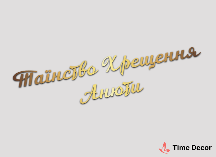 Пластиковий напис "Таїнство Хрещення Анюти" – дзеркальний або матовий пластик, можливе виготовлення з клейкою зворотною поверхнею для легкого монтажу.
