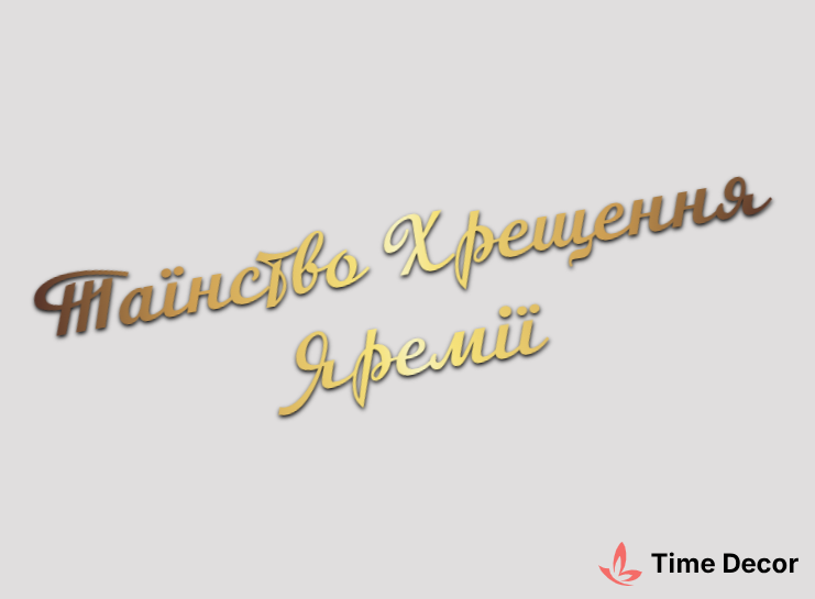 Пластиковий напис "Таїнство Хрещення Яремії" – дзеркальний або матовий пластик, можливе виготовлення з клейкою зворотною поверхнею для легкого монтажу.