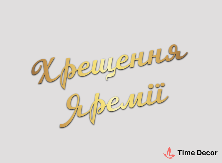 Пластиковий напис "Хрещення Яремії" – дзеркальний або матовий пластик, можливе виготовлення з клейкою зворотною поверхнею для легкого монтажу.