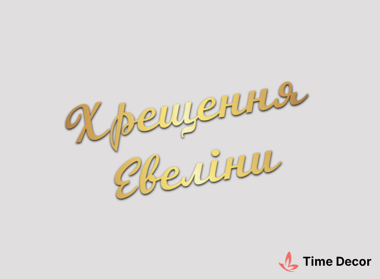 Пластиковий напис "Хрещення Евеліни" – дзеркальний або матовий пластик, можливе виготовлення з клейкою зворотною поверхнею для легкого монтажу.