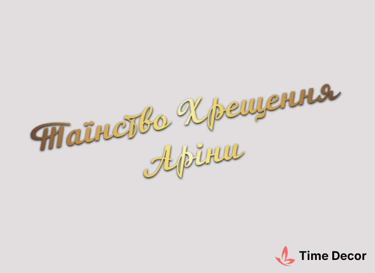 Пластиковий напис "Таїнство Хрещення Аріни" – дзеркальний або матовий пластик, можливе виготовлення з клейкою зворотною поверхнею для легкого монтажу.