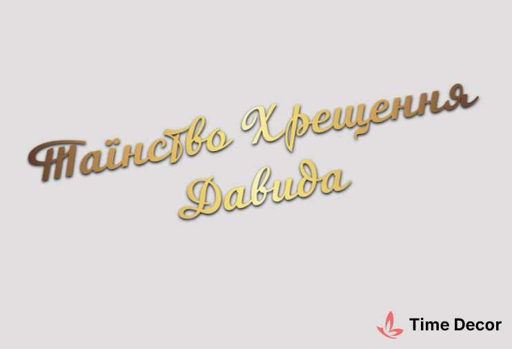 Пластиковий напис "Таїнство Хрещення Давида" – дзеркальний або матовий пластик, можливе виготовлення з клейкою зворотною поверхнею для легкого монтажу.