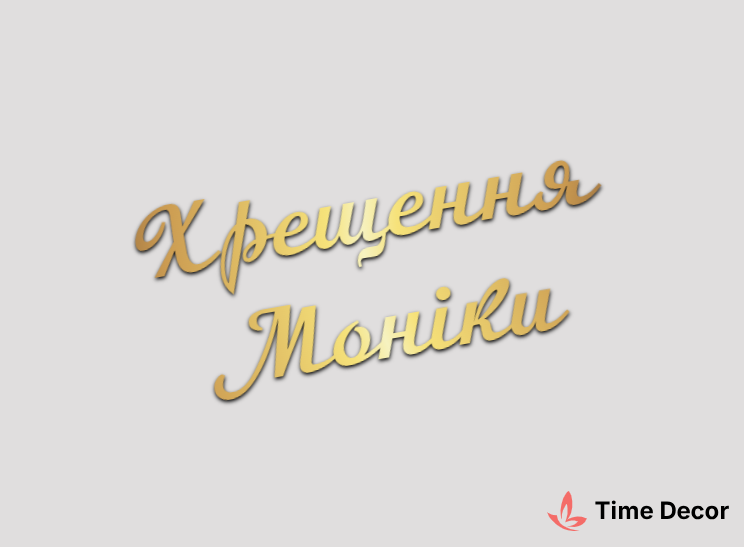 Пластиковий напис "Хрещення Моніки" – дзеркальний або матовий пластик, можливе виготовлення з клейкою зворотною поверхнею для легкого монтажу.