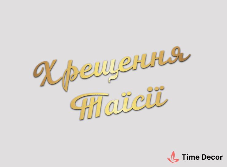 Пластиковий напис "Хрещення Таїсії" – дзеркальний або матовий пластик, можливе виготовлення з клейкою зворотною поверхнею для легкого монтажу.