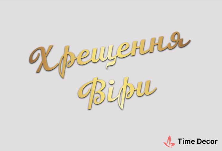 Пластиковий напис "Хрещення Віри" – дзеркальний або матовий пластик, можливе виготовлення з клейкою зворотною поверхнею для легкого монтажу.