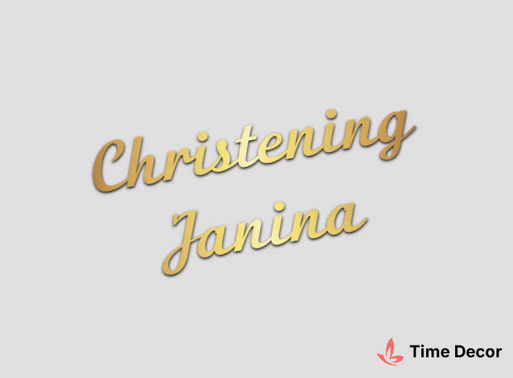 Пластиковий напис "Christening Janina" – дзеркальний або матовий пластик, можливе виготовлення з клейкою зворотною поверхнею для легкого монтажу.