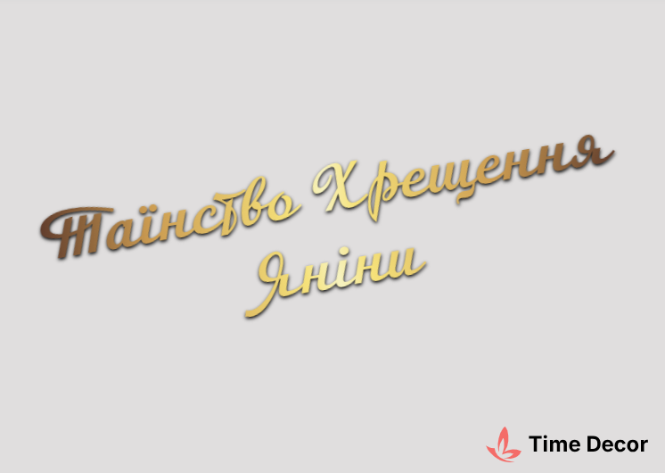 Пластиковий напис "Таїнство Хрещення Яніни" – дзеркальний або матовий пластик, можливе виготовлення з клейкою зворотною поверхнею для легкого монтажу.
