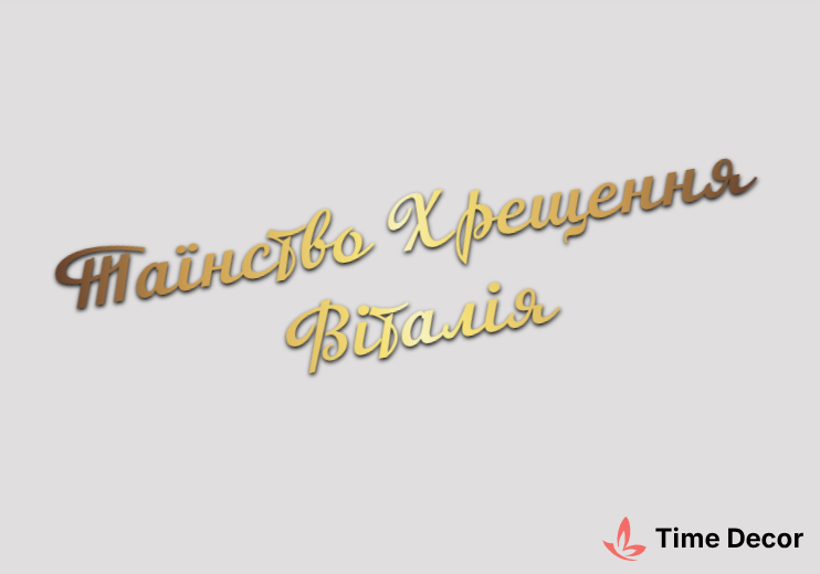 Пластиковий напис "Таїнство Хрещення Віталія" – дзеркальний або матовий пластик, можливе виготовлення з клейкою зворотною поверхнею для легкого монтажу.