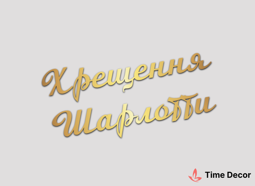 Пластиковий напис "Хрещення Шарлотти" – дзеркальний або матовий пластик, можливе виготовлення з клейкою зворотною поверхнею для легкого монтажу.