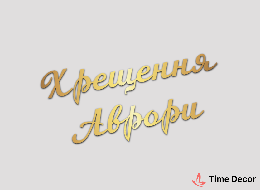 Пластиковий напис "Хрещення Аврори" – дзеркальний або матовий пластик, можливе виготовлення з клейкою зворотною поверхнею для легкого монтажу.