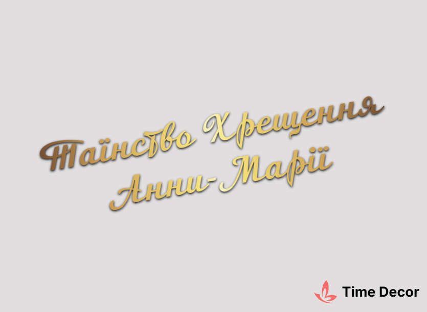 Пластиковий напис "Таїнство Хрещення Анни-Марії" – дзеркальний або матовий пластик, можливе виготовлення з клейкою зворотною поверхнею для легкого монтажу.