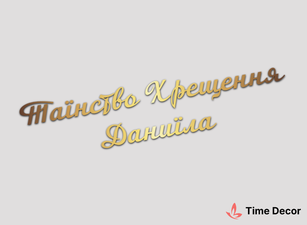 Об’ємний 3D напис "Таїнство Хрещення Даниїла" – стильне рішення для вашого магазину, офісу або дому. Може бути виконаний у фірмовому стилі.