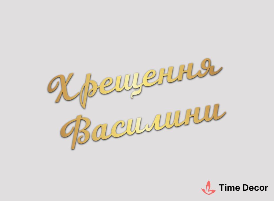 Пластиковий напис "Хрещення Василини" – дзеркальний або матовий пластик, можливе виготовлення з клейкою зворотною поверхнею для легкого монтажу.