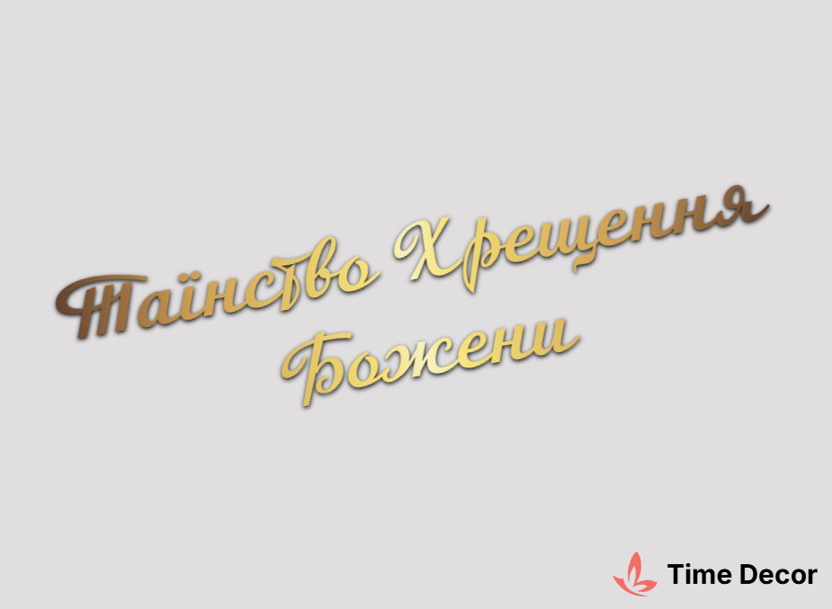 Пластиковий напис "Таїнство Хрещення Божени" – дзеркальний або матовий пластик, можливе виготовлення з клейкою зворотною поверхнею для легкого монтажу.