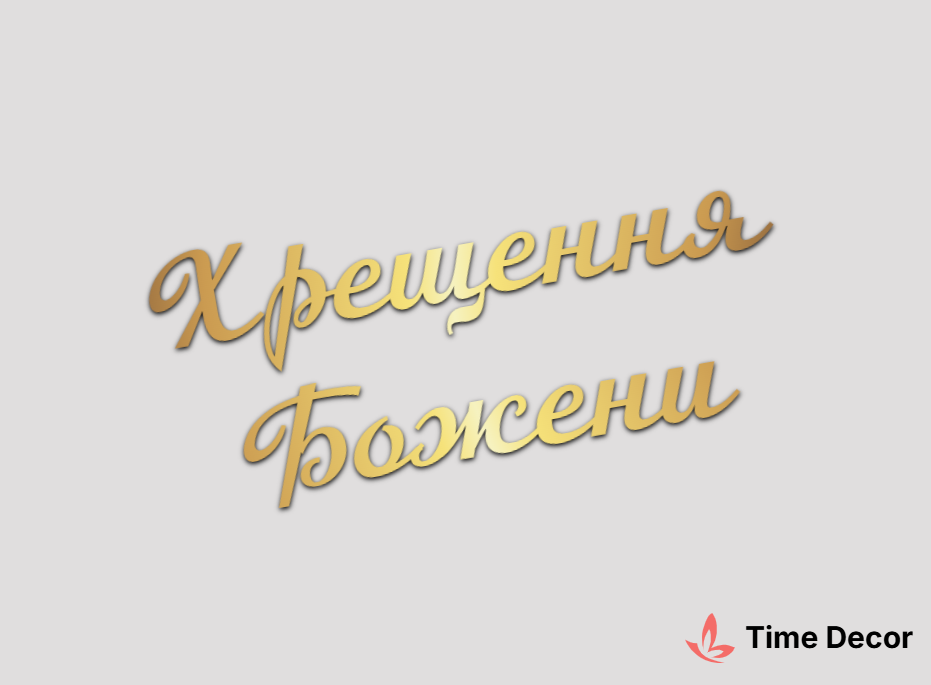 Пластиковий напис "Хрещення Божени" – дзеркальний або матовий пластик, можливе виготовлення з клейкою зворотною поверхнею для легкого монтажу.