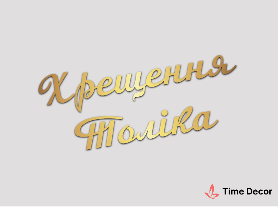 Пластиковий напис "Хрещення Толіка" – дзеркальний або матовий пластик, можливе виготовлення з клейкою зворотною поверхнею для легкого монтажу.