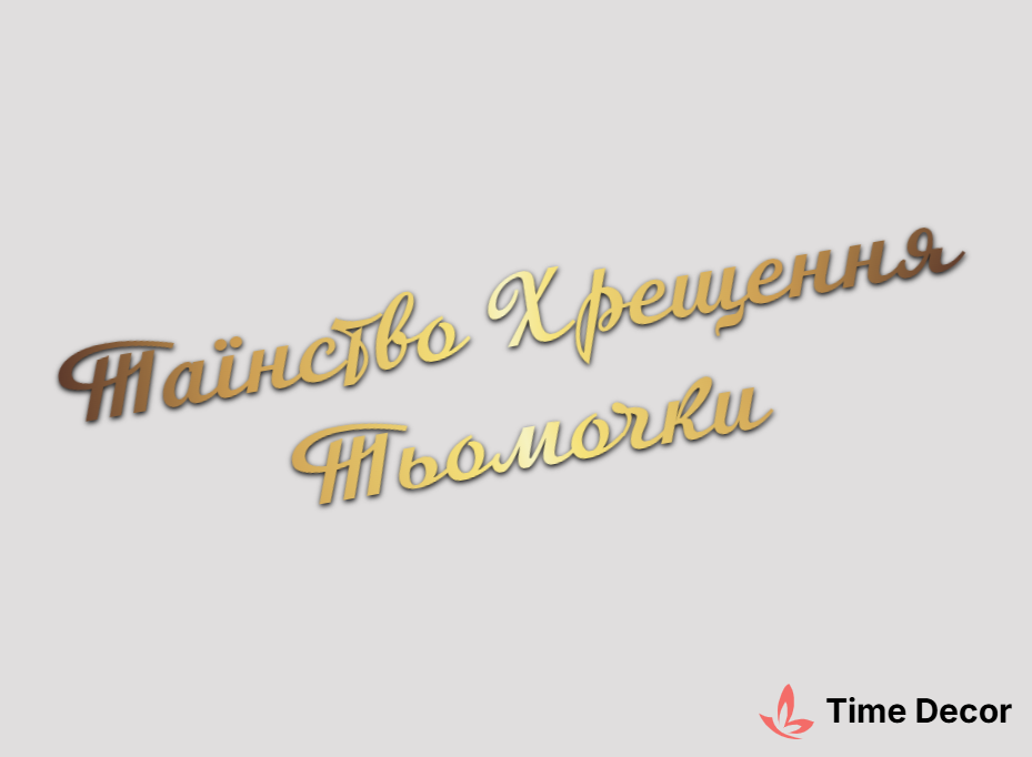 Пластиковий напис "Таїнство Хрещення Тьомочки" – дзеркальний або матовий пластик, можливе виготовлення з клейкою зворотною поверхнею для легкого монтажу.