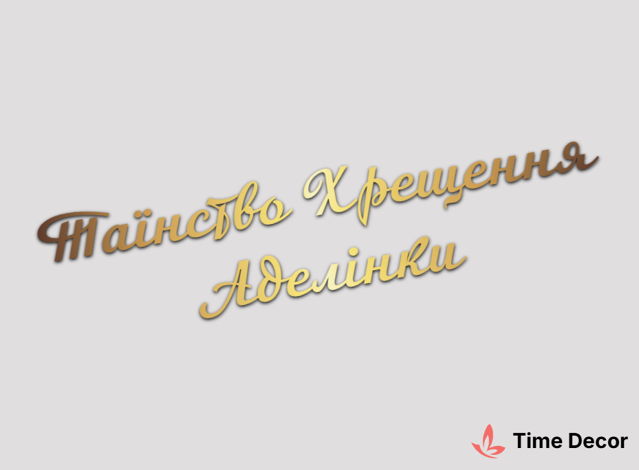 Пластиковий напис "Таїнство Хрещення Аделінки" – дзеркальний або матовий пластик, можливе виготовлення з клейкою зворотною поверхнею для легкого монтажу.