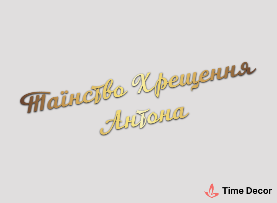Пластиковий напис "Таїнство Хрещення Антона" – дзеркальний або матовий пластик, можливе виготовлення з клейкою зворотною поверхнею для легкого монтажу.