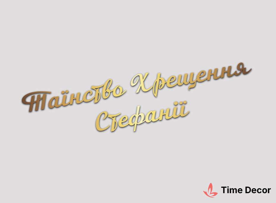 Пластиковий напис "Таїнство Хрещення Стефанії" – дзеркальний або матовий пластик, можливе виготовлення з клейкою зворотною поверхнею для легкого монтажу.