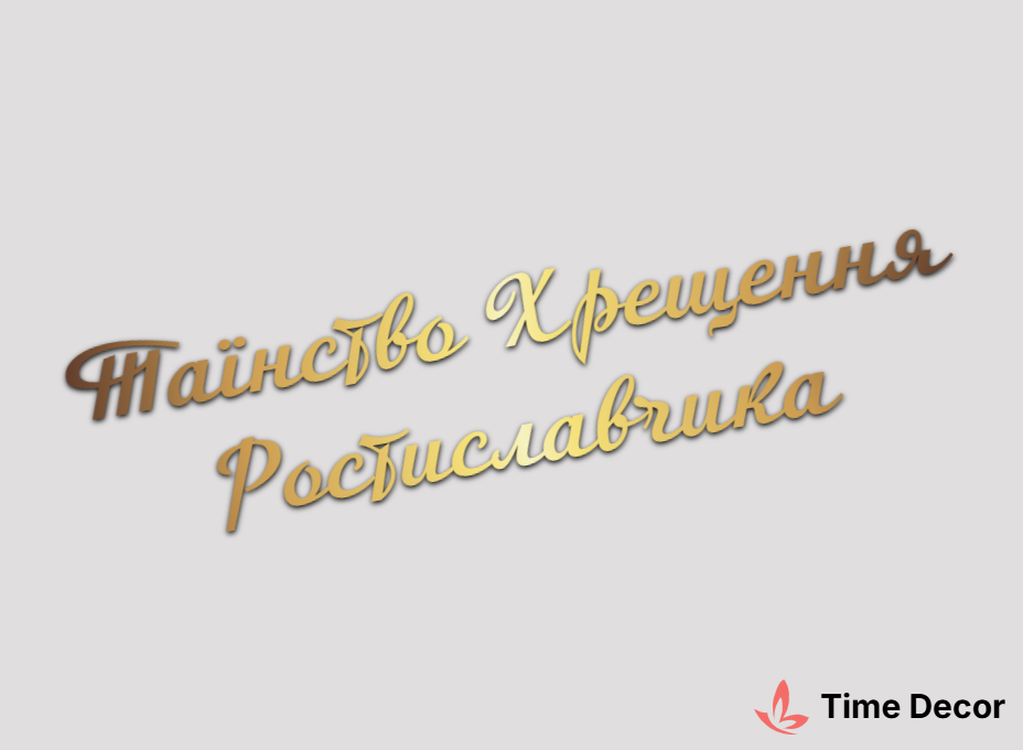 Пластиковий напис "Таїнство Хрещення Ростиславчика" – дзеркальний або матовий пластик, можливе виготовлення з клейкою зворотною поверхнею для легкого монтажу.