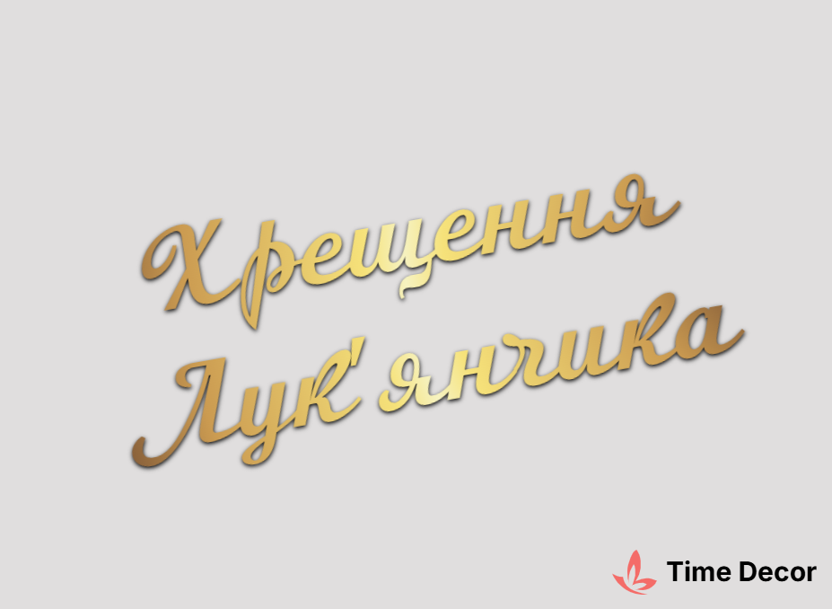 Пластиковий напис "Хрещення Лук'янчика" – дзеркальний або матовий пластик, можливе виготовлення з клейкою зворотною поверхнею для легкого монтажу.