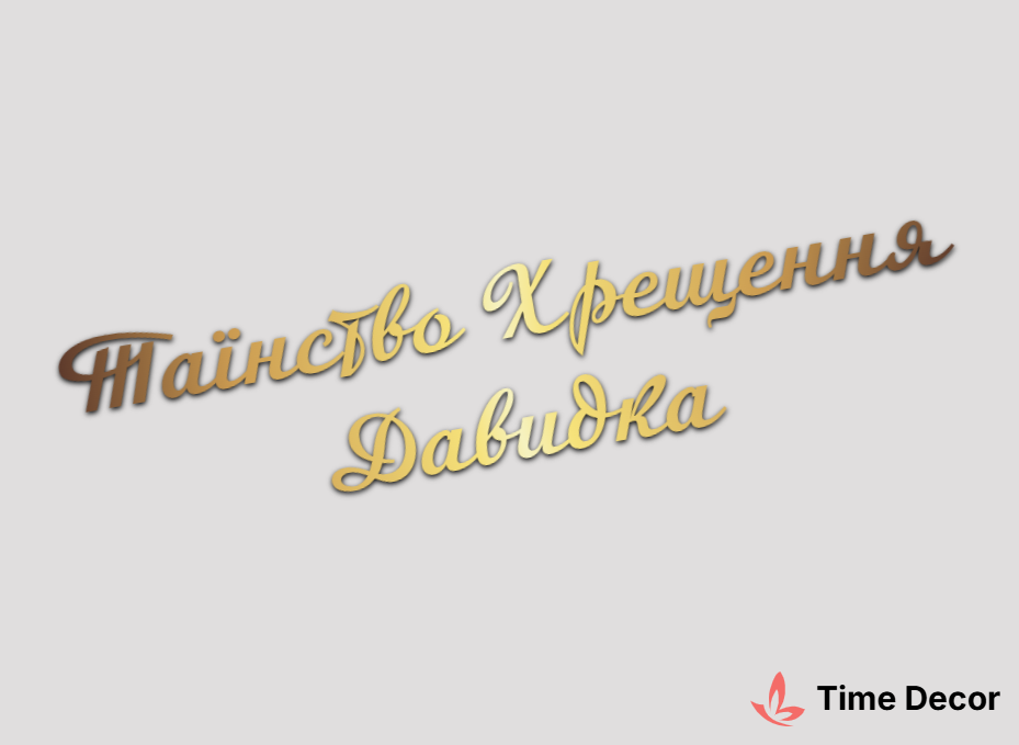 Пластиковий напис "Таїнство Хрещення Давидка" – дзеркальний або матовий пластик, можливе виготовлення з клейкою зворотною поверхнею для легкого монтажу.