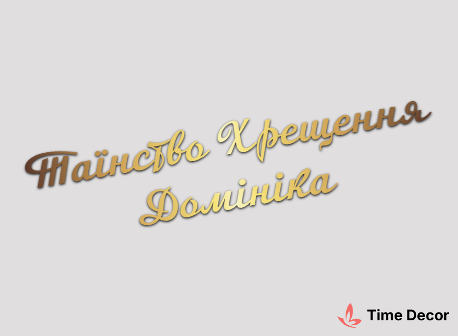 Пластиковий напис "Таїнство Хрещення Домініка" – дзеркальний або матовий пластик, можливе виготовлення з клейкою зворотною поверхнею для легкого монтажу.