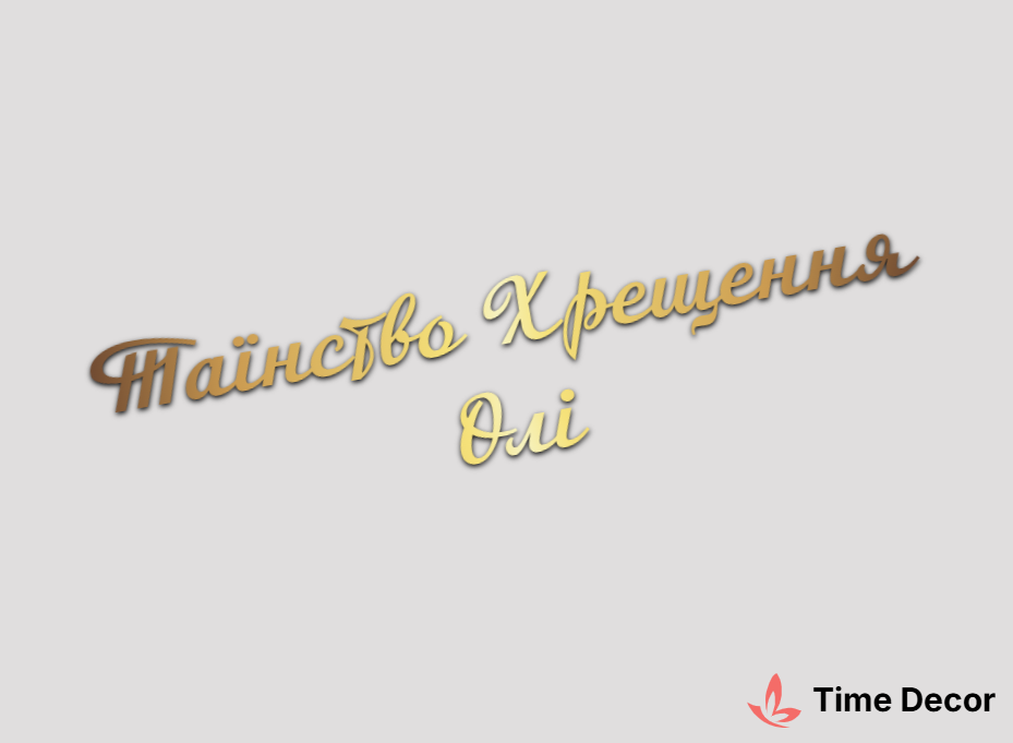 Об’ємний 3D напис "Таїнство Хрещення Олі" – стильне рішення для вашого магазину, офісу або дому. Може бути виконаний у фірмовому стилі.