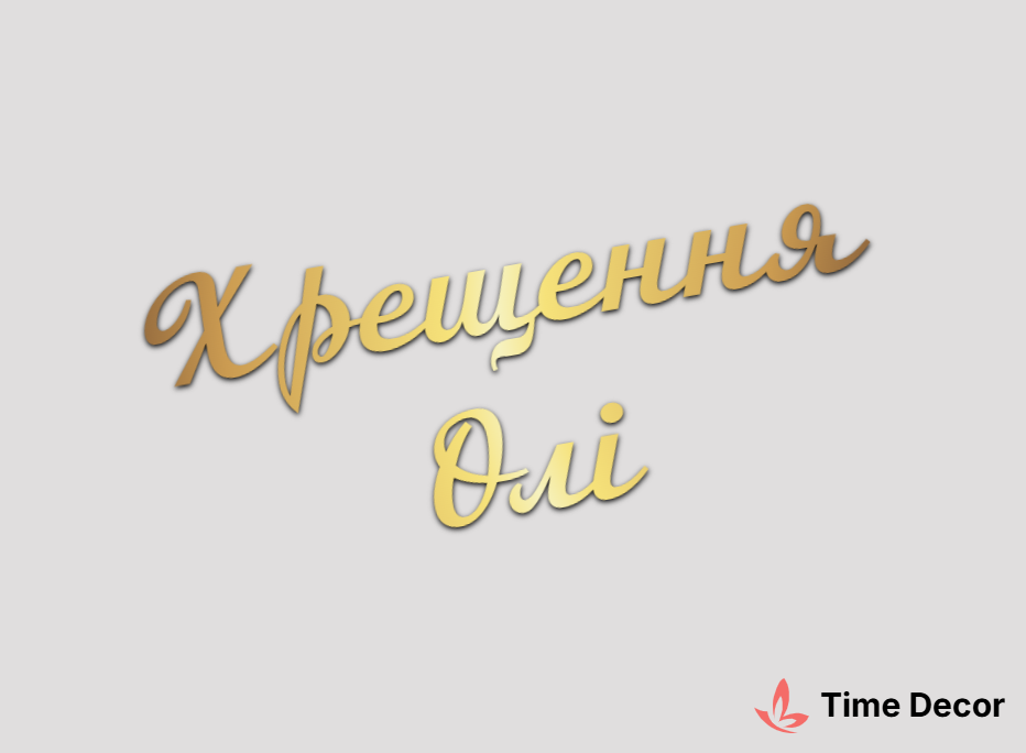 Пластиковий напис "Хрещення Олі" – дзеркальний або матовий пластик, можливе виготовлення з клейкою зворотною поверхнею для легкого монтажу.