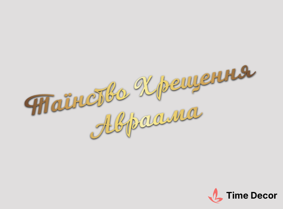 Пластиковий напис "Таїнство Хрещення Авраама" – дзеркальний або матовий пластик, можливе виготовлення з клейкою зворотною поверхнею для легкого монтажу.