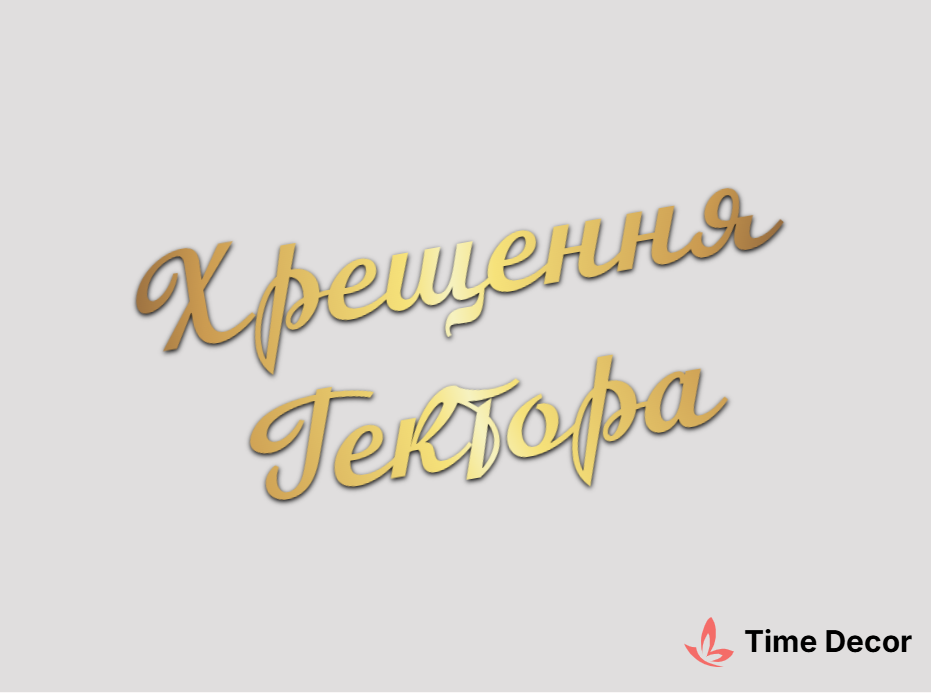 Пластиковий напис "Хрещення Гектора" – дзеркальний або матовий пластик, можливе виготовлення з клейкою зворотною поверхнею для легкого монтажу.