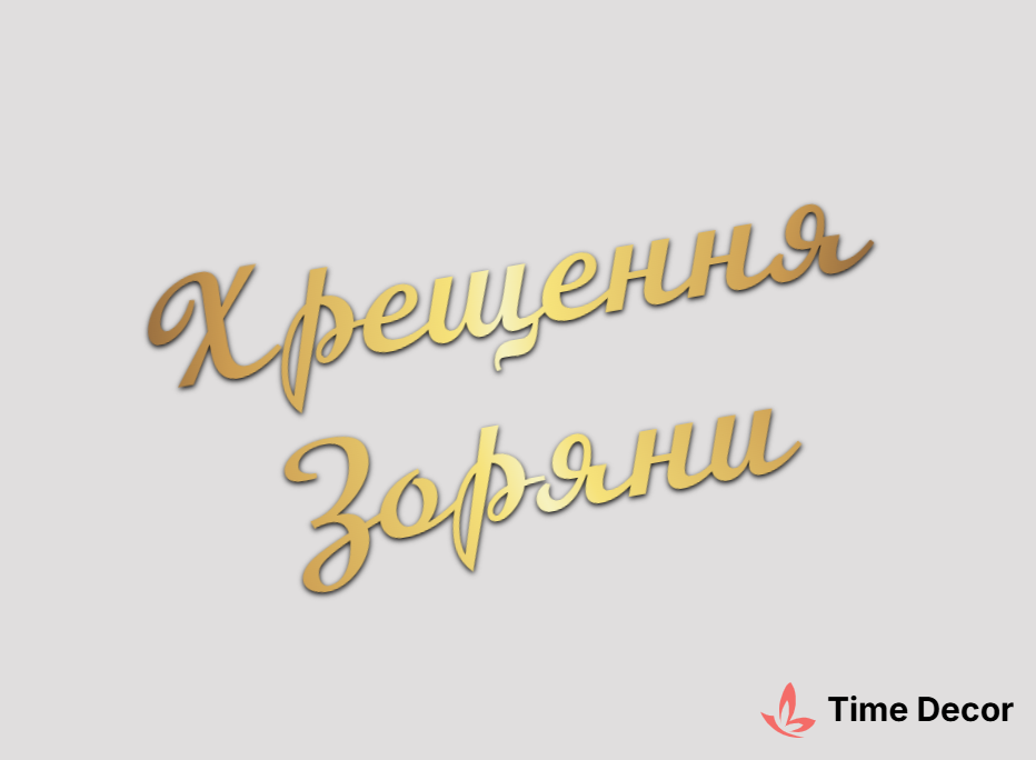 Пластиковий напис "Хрещення Зоряни" – дзеркальний або матовий пластик, можливе виготовлення з клейкою зворотною поверхнею для легкого монтажу.
