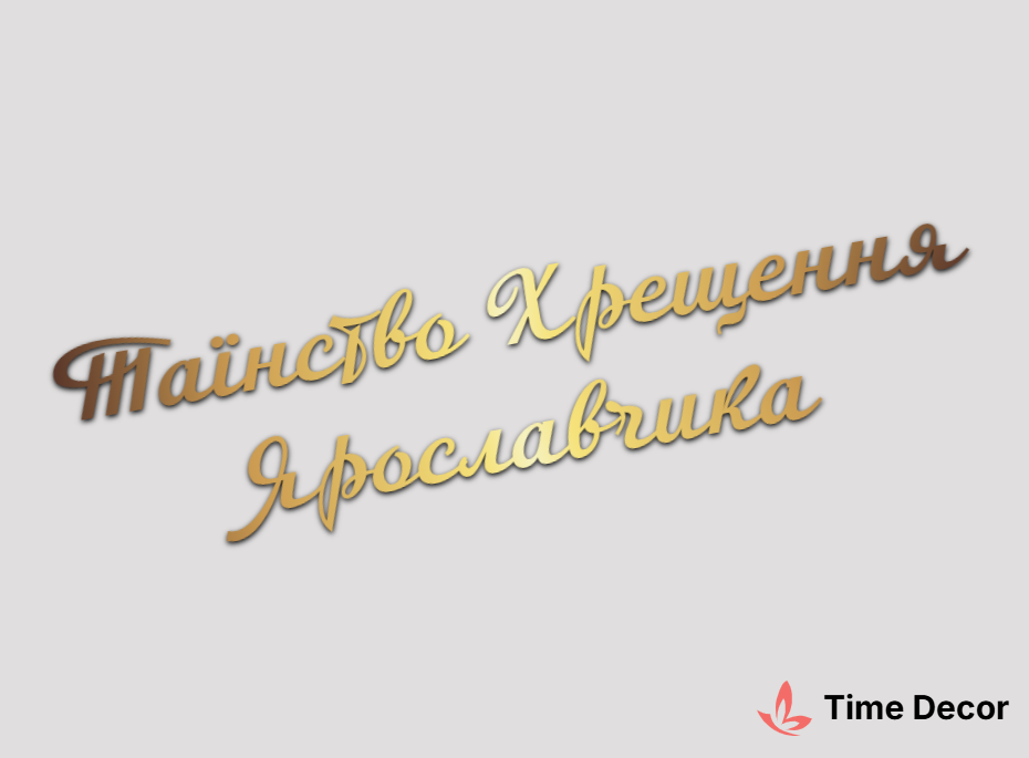 Пластиковий напис "Таїнство Хрещення Ярославчика" – дзеркальний або матовий пластик, можливе виготовлення з клейкою зворотною поверхнею для легкого монтажу.