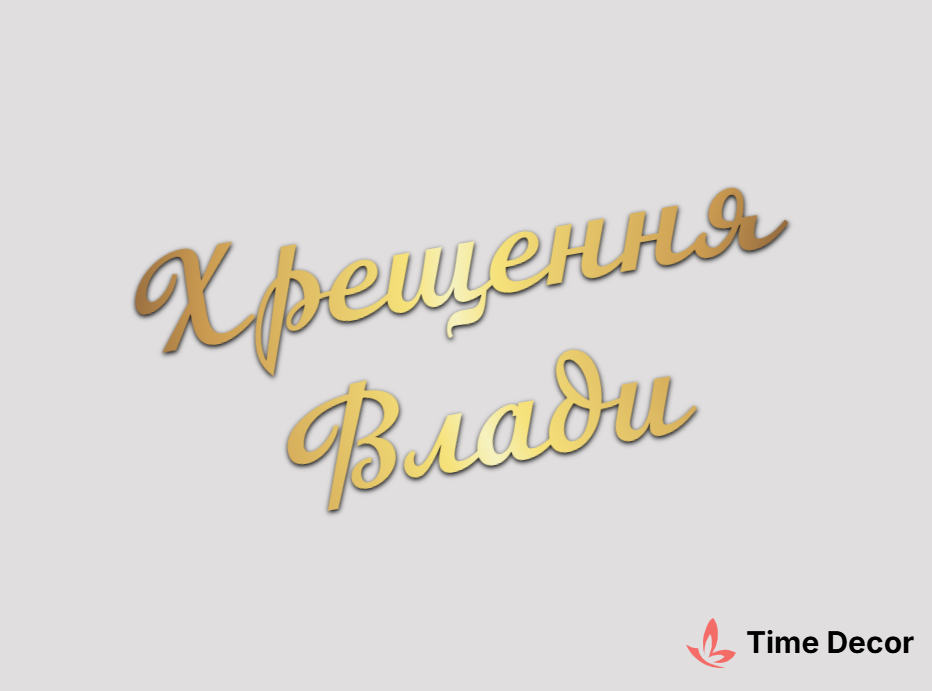 Пластиковий напис "Хрещення Влади" – дзеркальний або матовий пластик, можливе виготовлення з клейкою зворотною поверхнею для легкого монтажу.