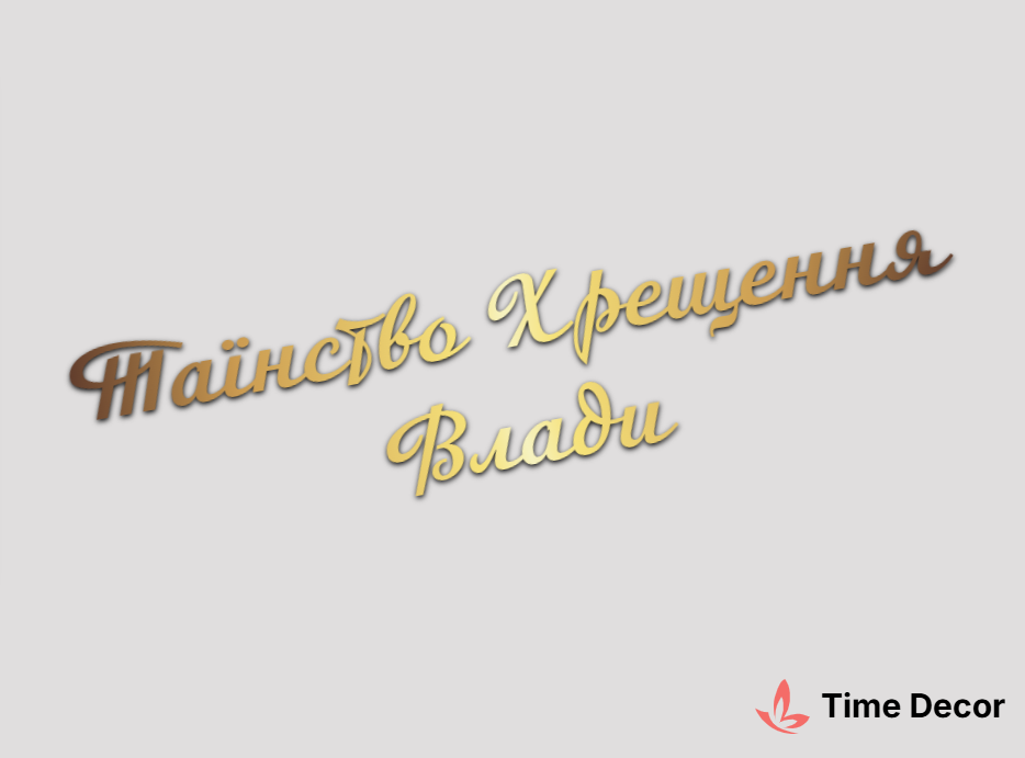 Пластиковий напис "Таїнство Хрещення Влади" – дзеркальний або матовий пластик, можливе виготовлення з клейкою зворотною поверхнею для легкого монтажу.