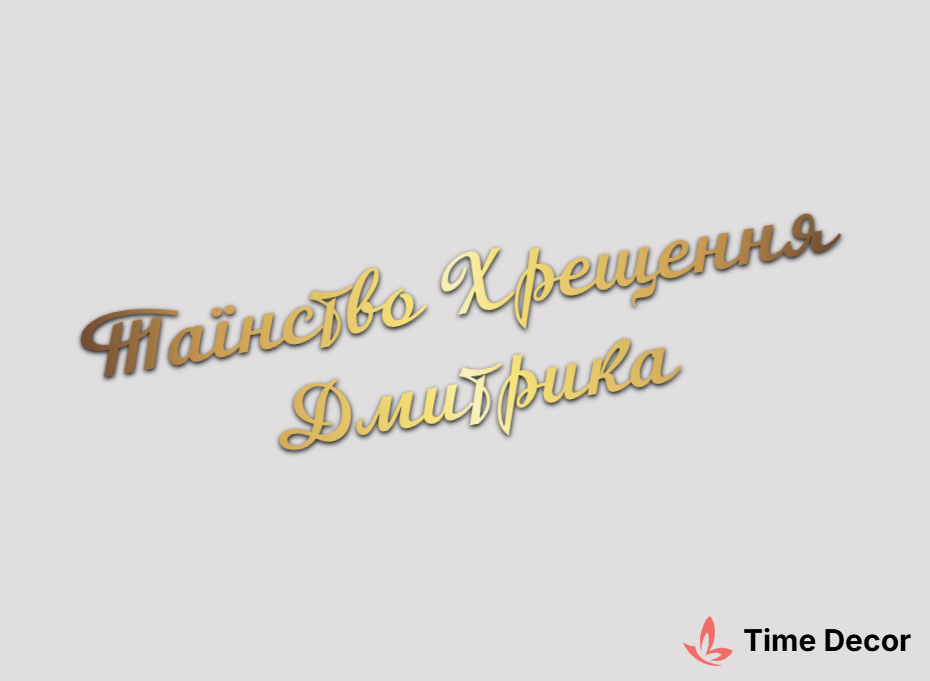 Пластиковий напис "Таїнство Хрещення Дмитрика" – дзеркальний або матовий пластик, можливе виготовлення з клейкою зворотною поверхнею для легкого монтажу.