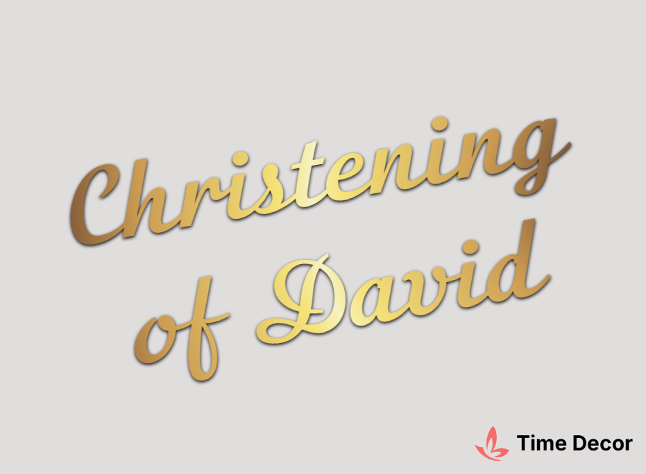 Пластиковий напис "Christening of David" – дзеркальний або матовий пластик, можливе виготовлення з клейкою зворотною поверхнею для легкого монтажу.