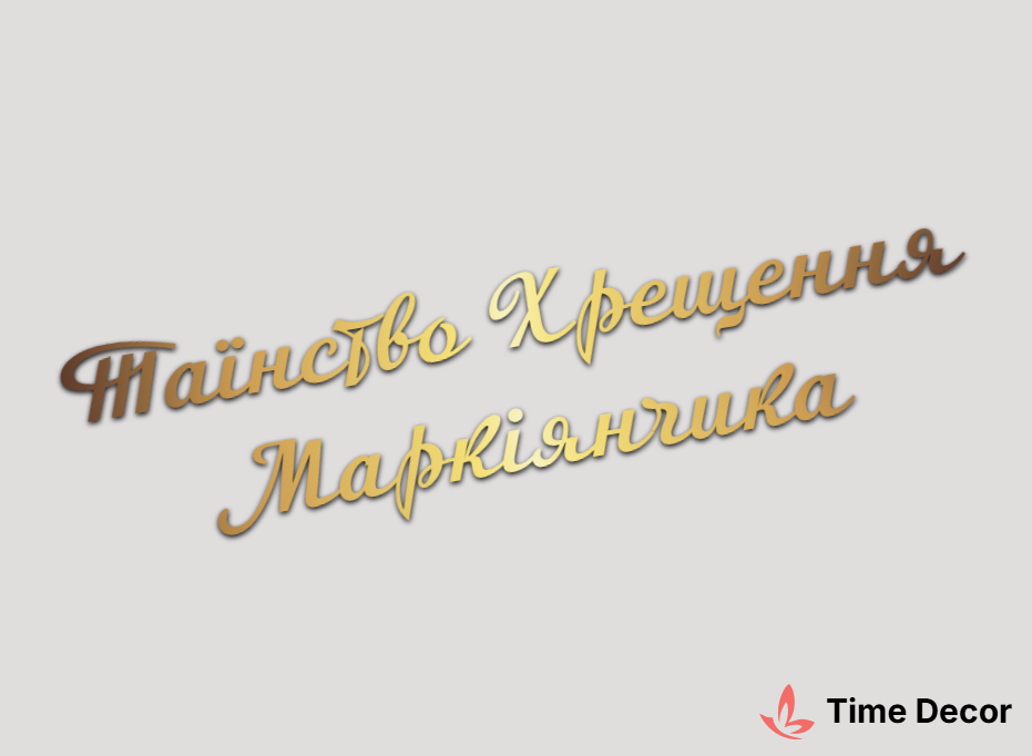 Пластиковий напис "Таїнство Хрещення Маркіянчика" – дзеркальний або матовий пластик, можливе виготовлення з клейкою зворотною поверхнею для легкого монтажу.