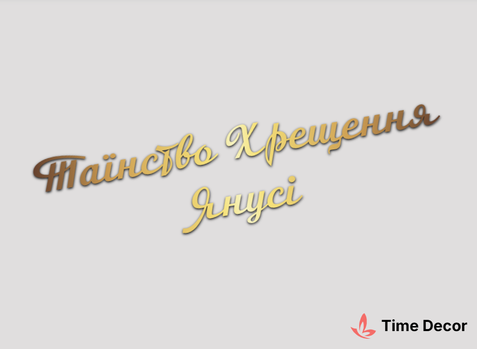 Пластиковий напис "Таїнство Хрещення Янусі" – дзеркальний або матовий пластик, можливе виготовлення з клейкою зворотною поверхнею для легкого монтажу.