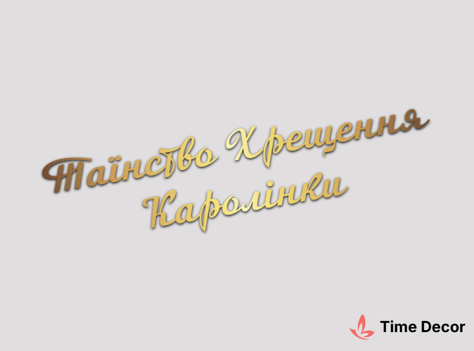 Пластиковий напис "Таїнство Хрещення Каролінки" – дзеркальний або матовий пластик, можливе виготовлення з клейкою зворотною поверхнею для легкого монтажу.