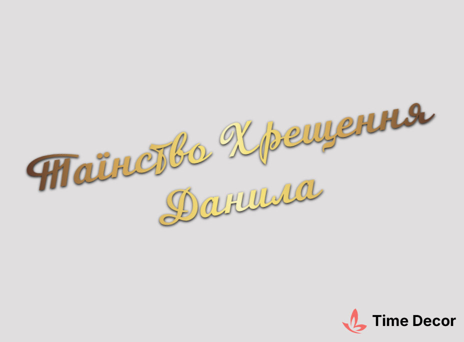 Пластиковий напис "Таїнство Хрещення Данила" – дзеркальний або матовий пластик, можливе виготовлення з клейкою зворотною поверхнею для легкого монтажу.
