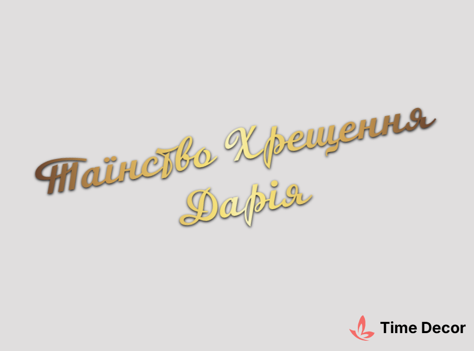 Пластиковий напис "Таїнство Хрещення Дарія" – дзеркальний або матовий пластик, можливе виготовлення з клейкою зворотною поверхнею для легкого монтажу.
