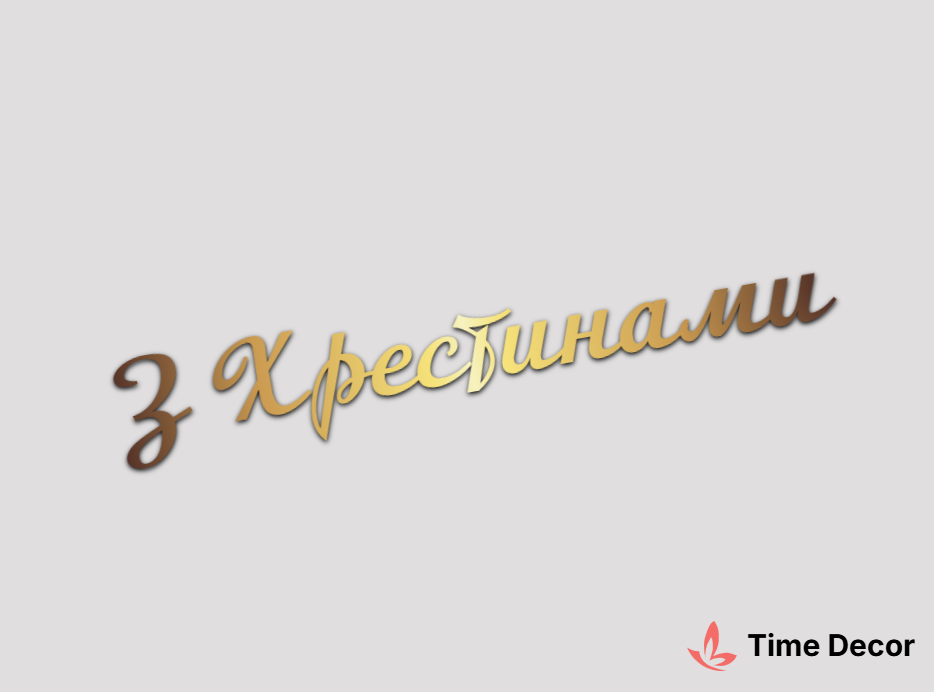 Пластиковий напис "З Хрестинами" – дзеркальний або матовий пластик, можливе виготовлення з клейкою зворотною поверхнею для легкого монтажу.