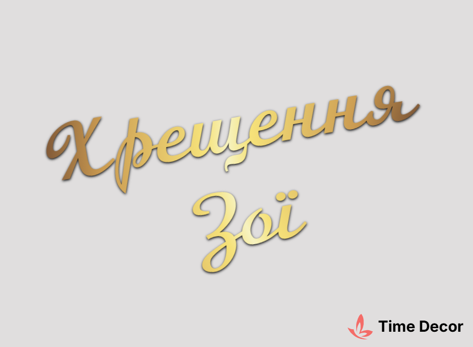 Пластиковий напис "Хрещення Зої" – дзеркальний або матовий пластик, можливе виготовлення з клейкою зворотною поверхнею для легкого монтажу.