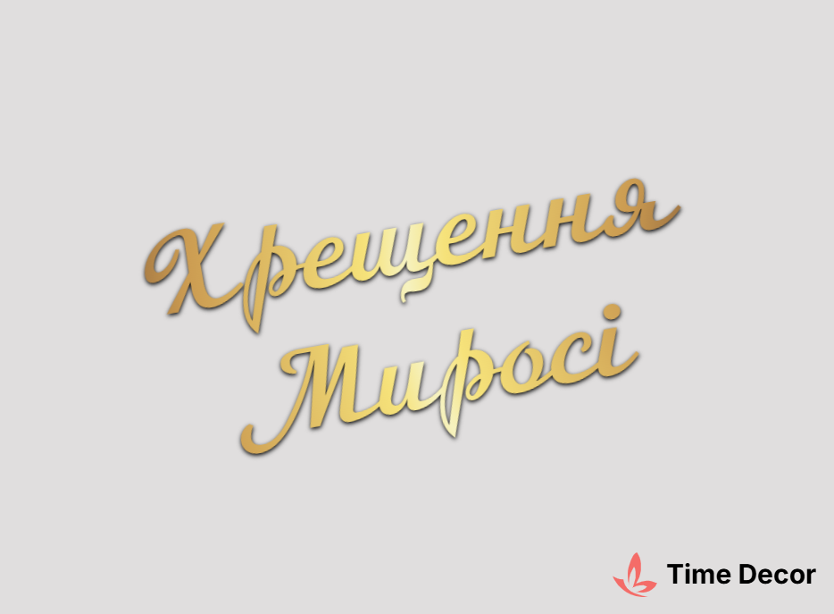 Пластиковий напис "Хрещення Миросі" – дзеркальний або матовий пластик, можливе виготовлення з клейкою зворотною поверхнею для легкого монтажу.