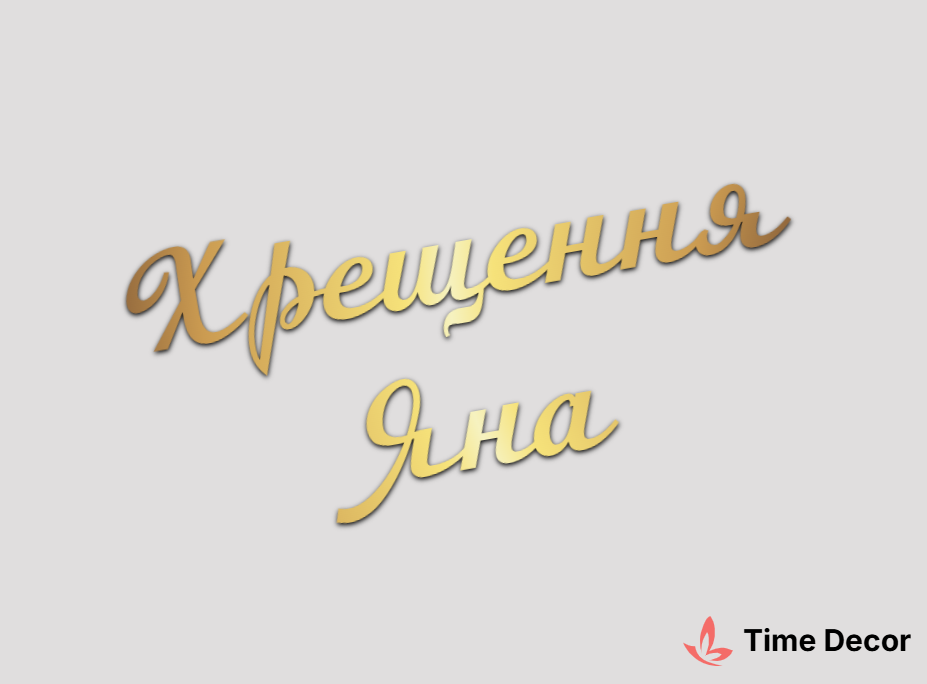 Пластиковий напис "Хрещення Яна" – дзеркальний або матовий пластик, можливе виготовлення з клейкою зворотною поверхнею для легкого монтажу.