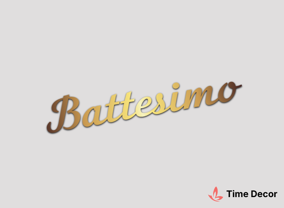 Пластиковий напис "Battesimo" – дзеркальний або матовий пластик, можливе виготовлення з клейкою зворотною поверхнею для легкого монтажу.