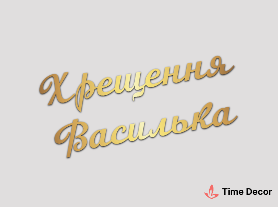 Пластиковий напис "Хрещення Василька" – дзеркальний або матовий пластик, можливе виготовлення з клейкою зворотною поверхнею для легкого монтажу.